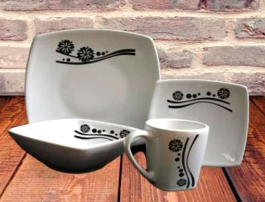 C10-VAJILLA CUADRADA NEGRA - FLORAL 4/16 *2 cantidad